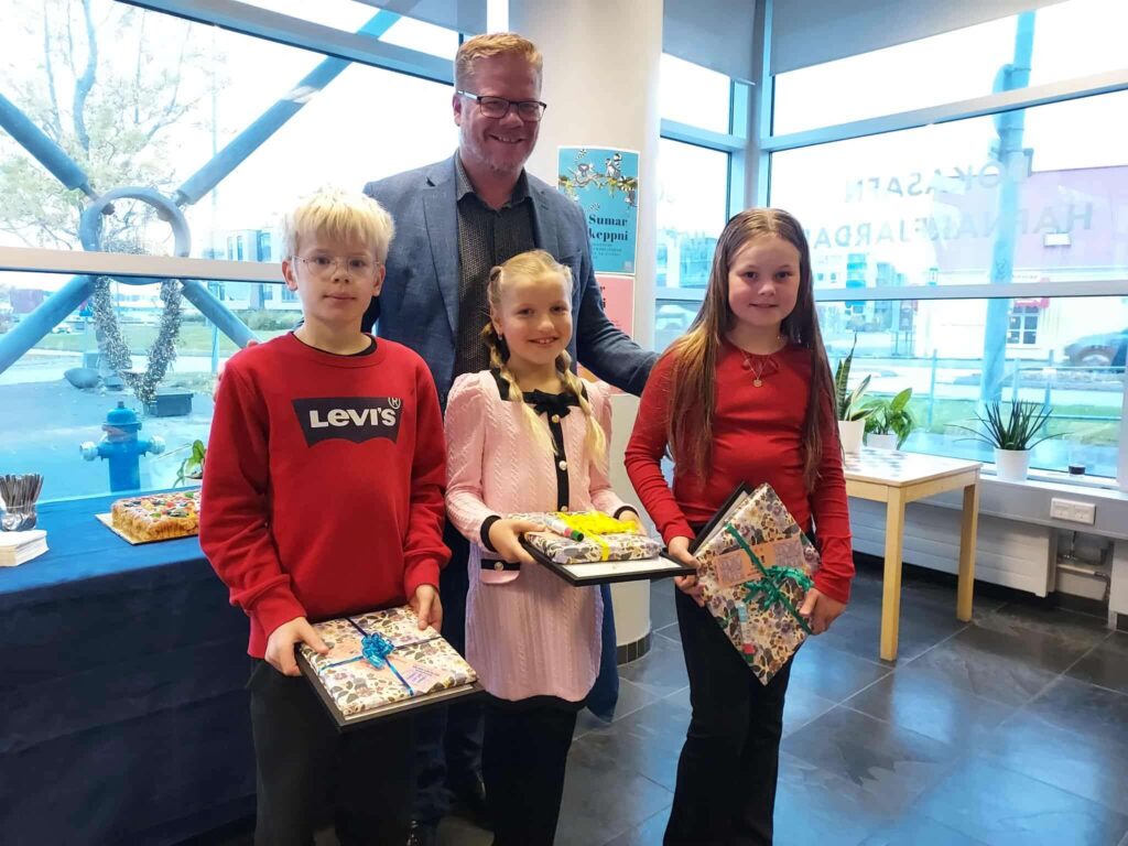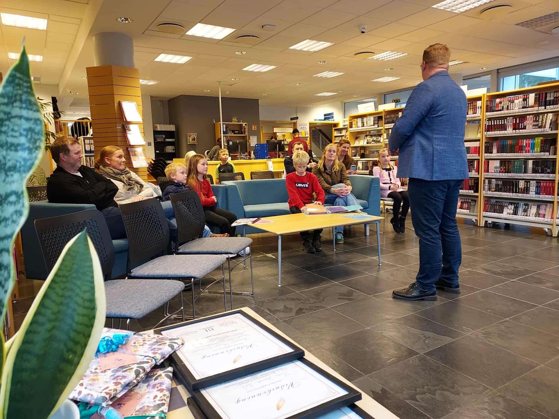 Valdimar Víðisson, bæjarstjóri, óskaði vinningshöfunum til hamingju á staðnum og hélt litla tölu. „Sumarlesturinn var með nýju sniði í ár. Mjög áhugavert og gaman að sjá hve mörg börn tóku þátt og lögðu sig fram,“ segir hann.