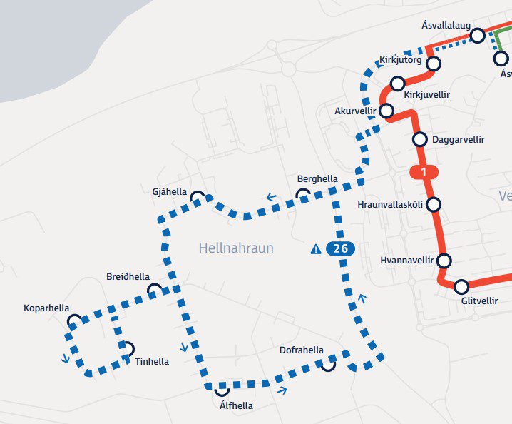 Zmiany zostały wprowadzone na zarządzanej przez Strætó linii nr 26, która przebiega przez Hellnahraun w Hafnarfjörður.