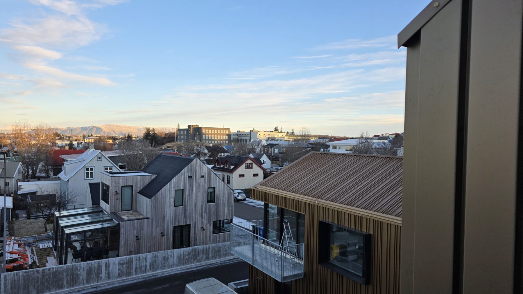 Bæjarstjóri skoðaði nýja fjölbýlishúsið að Suðurgötu 44 og segir það fallegt dæmi um þéttingu sem eykur gæði hverfisins og virðir söguna á staðnum.