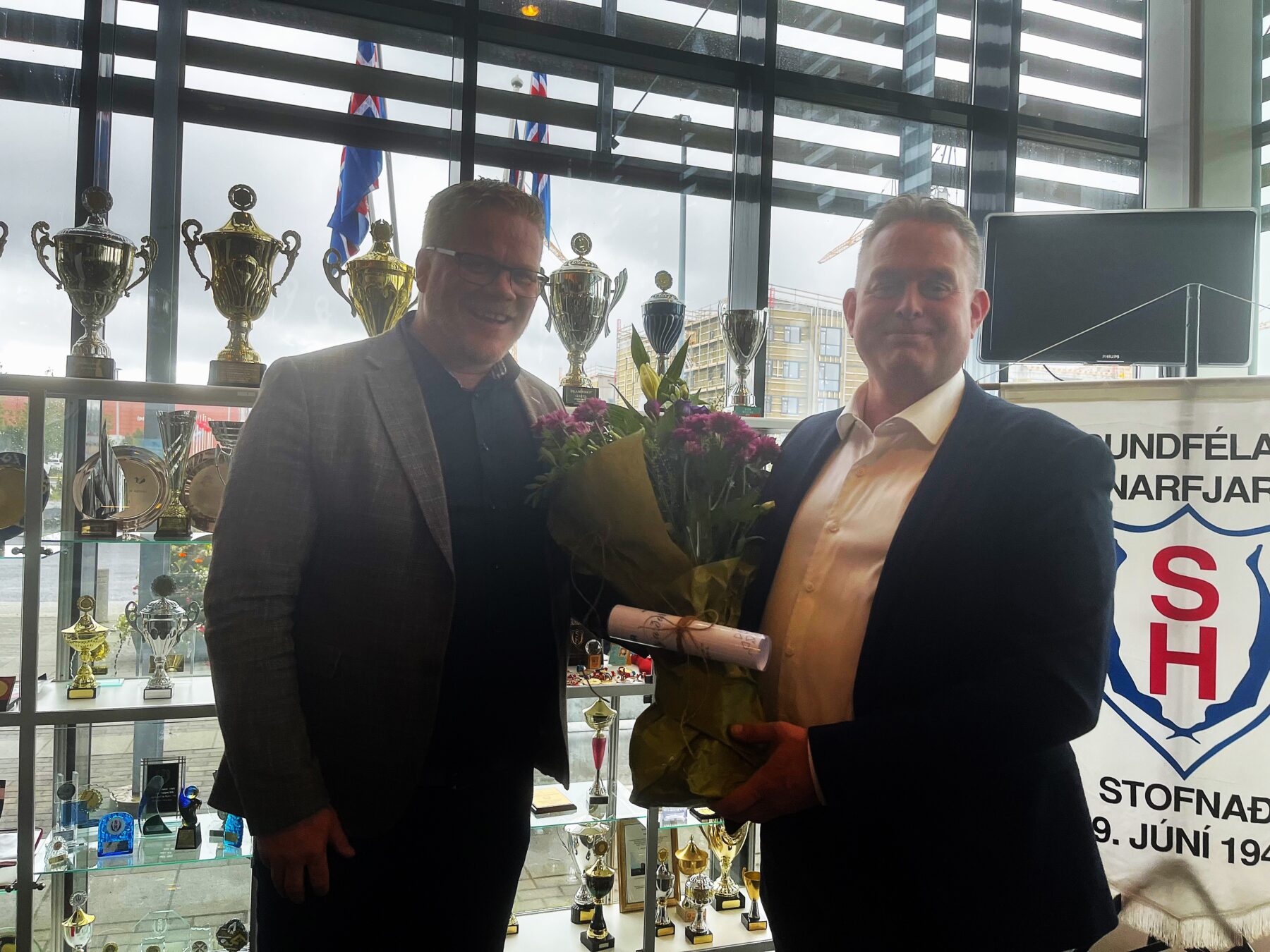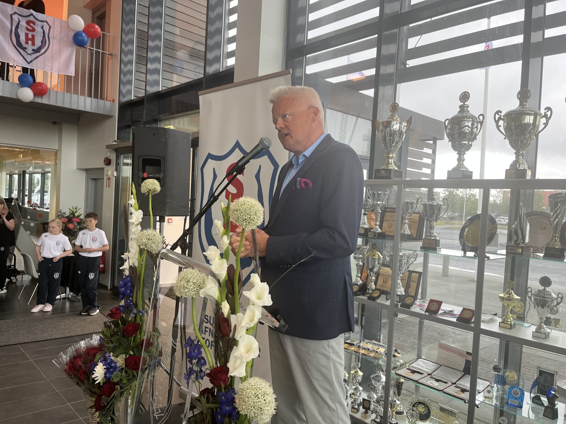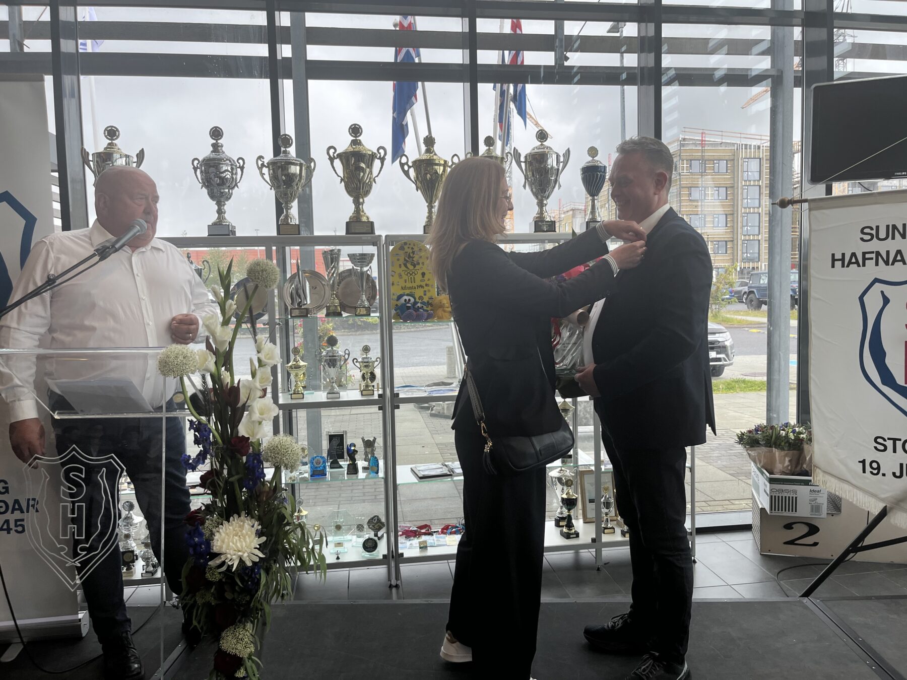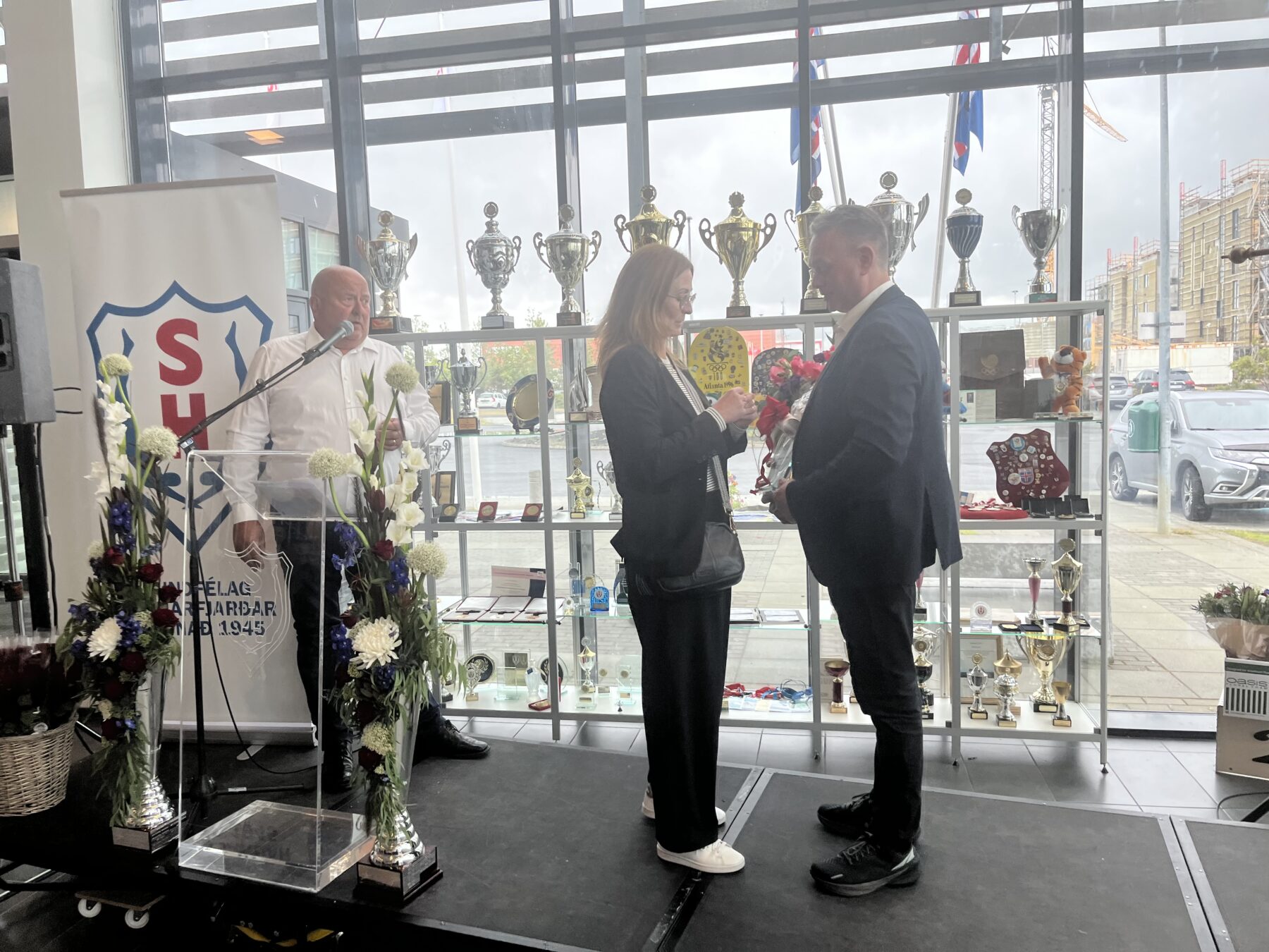 „Það eru ekki margir viðburðir sem gleðja mann jafn mikið og þegar við fáum að fagna góðu fólki sem hefur skilað ómetanlegu starfi í þágu samfélagsins og í dag er einmitt slíkur dagur,“ sagði Valdimar Víðisson bæjarstjóri við tilefnið. Sundfélagið hefði verið burðarás í íþróttalífi bæjarins og traustur og öflugur samstarfsaðili bæjarins.