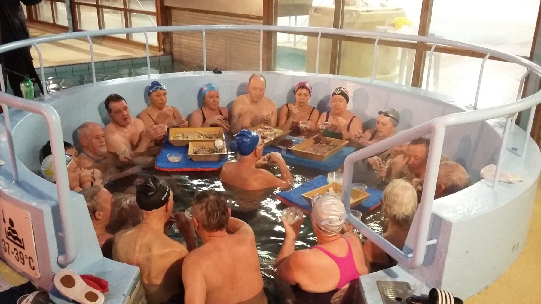 Sundhópur í Suðurbæjarlaug hittist nær daglega, syndir saman og á svo gott spjall í heita pottinum. Í upphafi Þorrans hittist hópurinn í þorraveislu og gæddi sér á dýrindis veitingum. Var þetta sjötta árið í röð sem blásið var til slíkrar veislu í sundlauginni á Þorranum. Hver og einn sundgarpur lagði til pening í sjóð í tilefni veislunnar. Í síðustu viku fóru fulltrúar sundhópsins á fund forsvarsmanna Neistans með ágóðann úr söfnuninni.