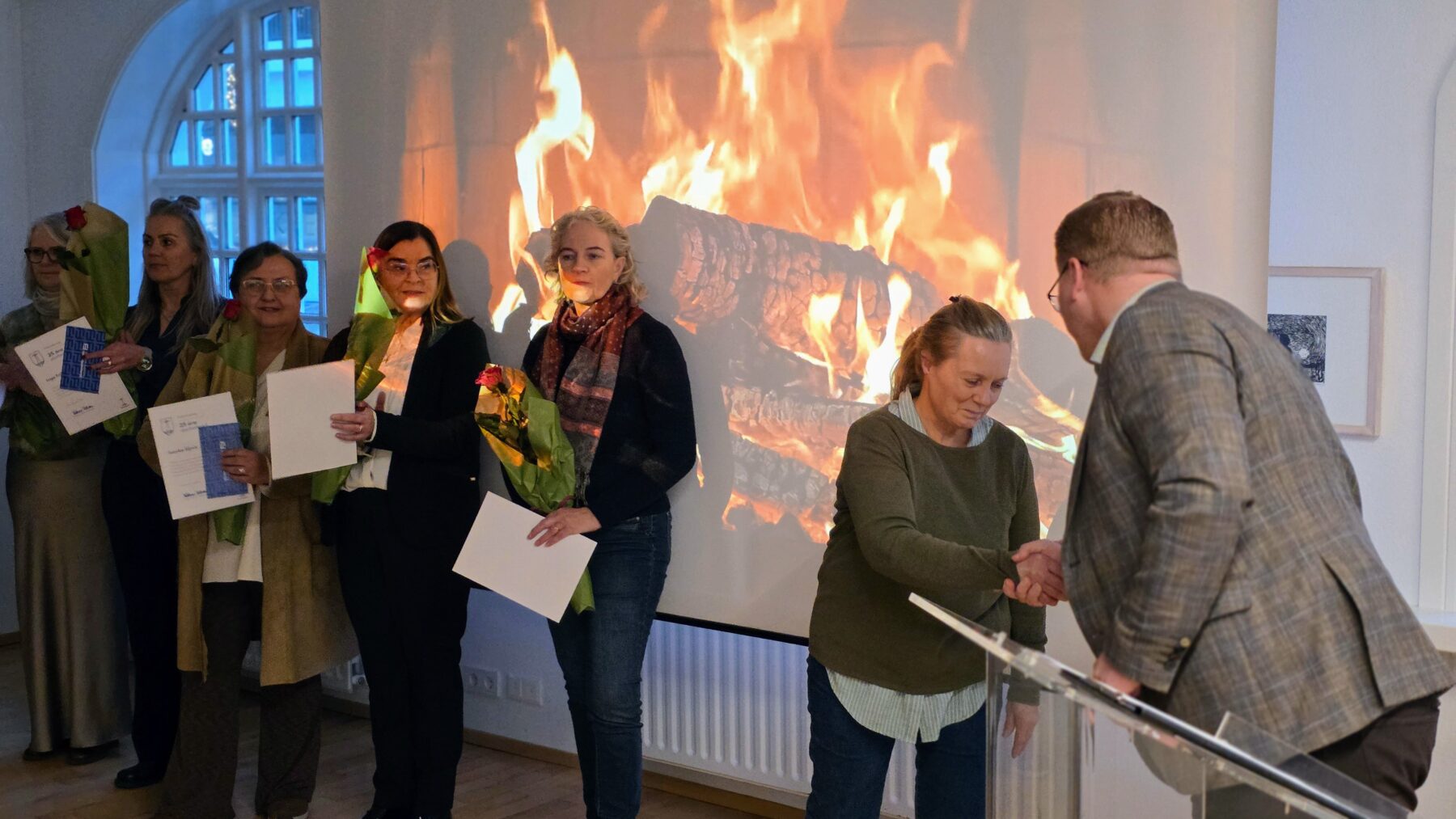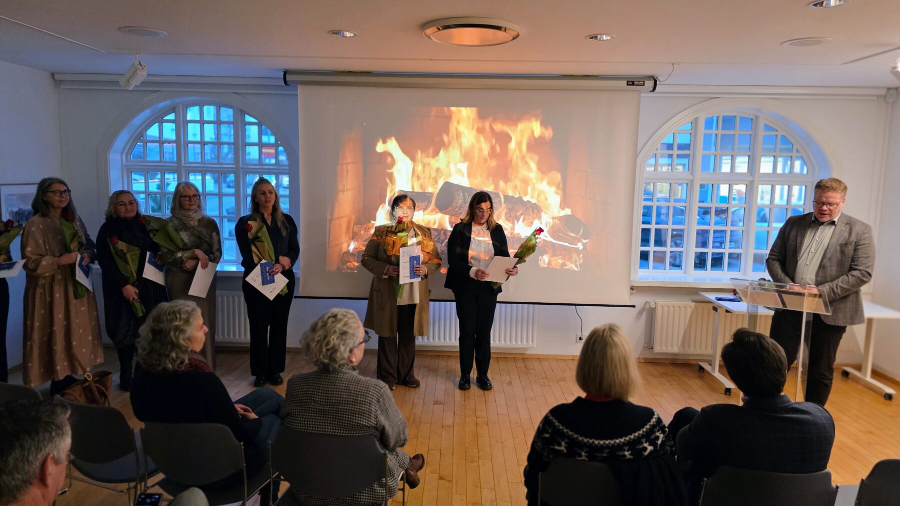 Valdimar þakkaði hverri og einni með gullfallegum orðum og Lind Einarsdóttir mannauðsstjóri afhenti blóm. Hér má sjá samantekt úr umsögnum um þessar tólf, en eina vanti á myndina.
