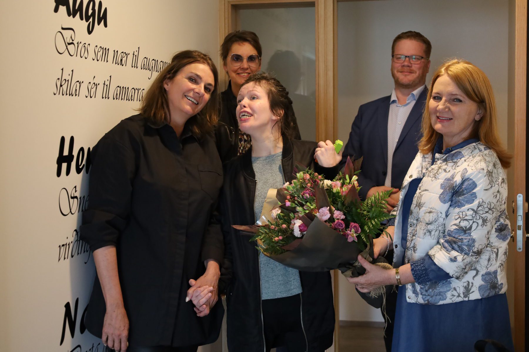 Rósa Guðbjartsdóttir bæjarstjóri Hafnarfjarðar, Valdimar Víðisson formaður fjölskylduráðs og Rannveig Einarsdóttir sviðsstjóri fjölskyldu- og barnamálasviðs heimsóttu forstöðukonu, starfsfólk og íbúa búsetukjarnans að Öldugötu á dögunum og færðu þeim fallega blómvendi. Einn fyrir hverja íbúð og einn fyrir sameiginlega aðstöðu allra.
