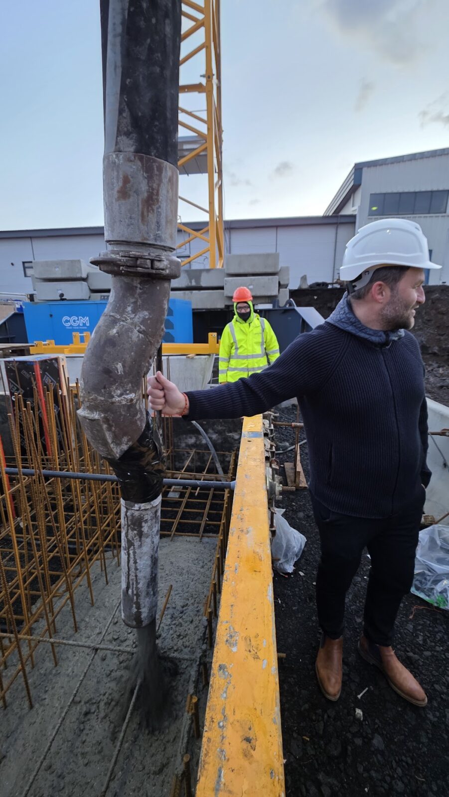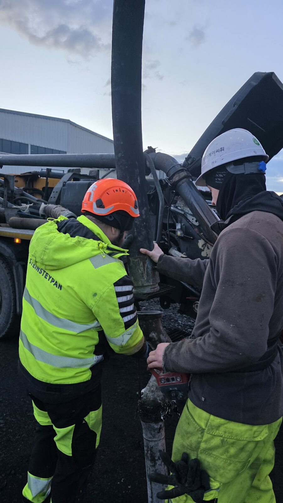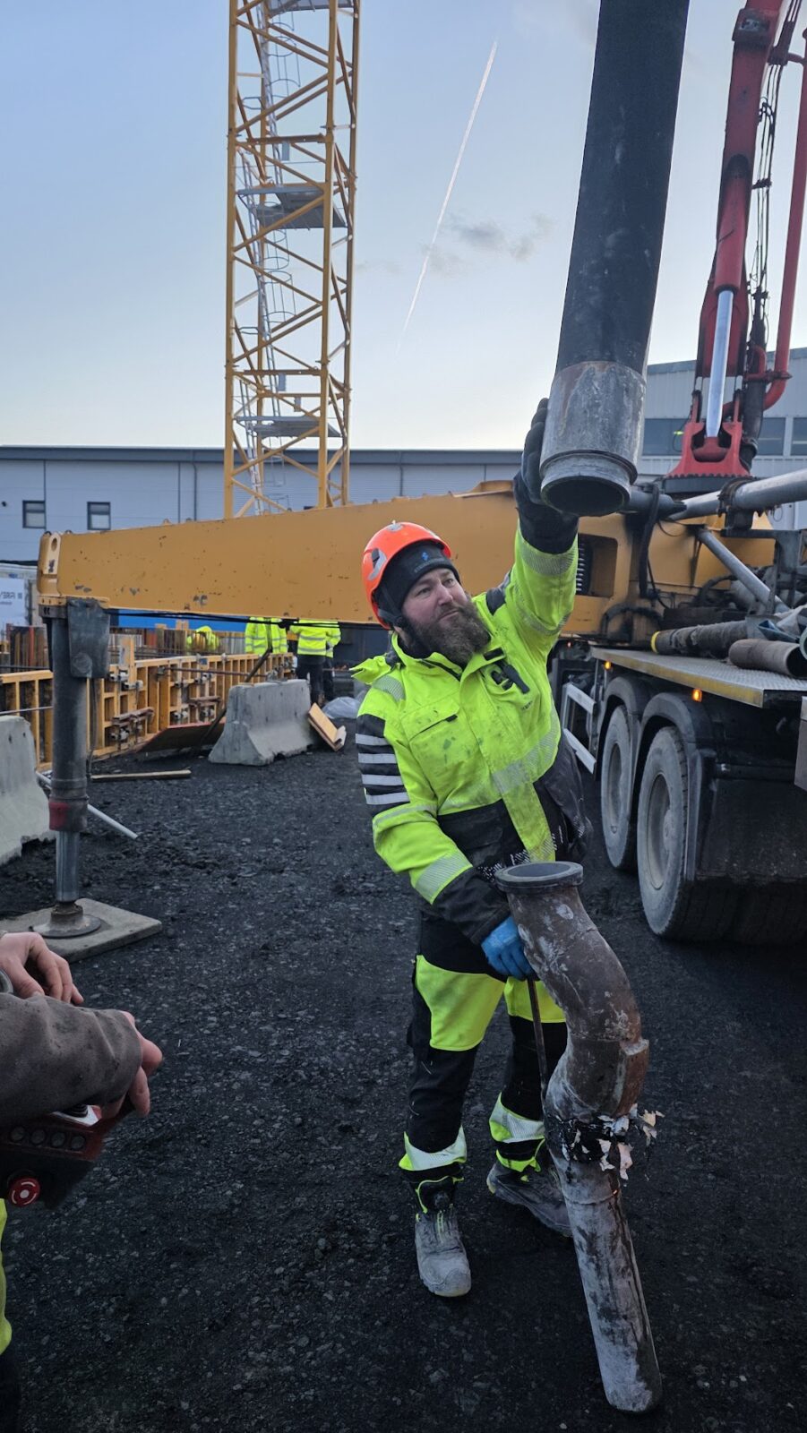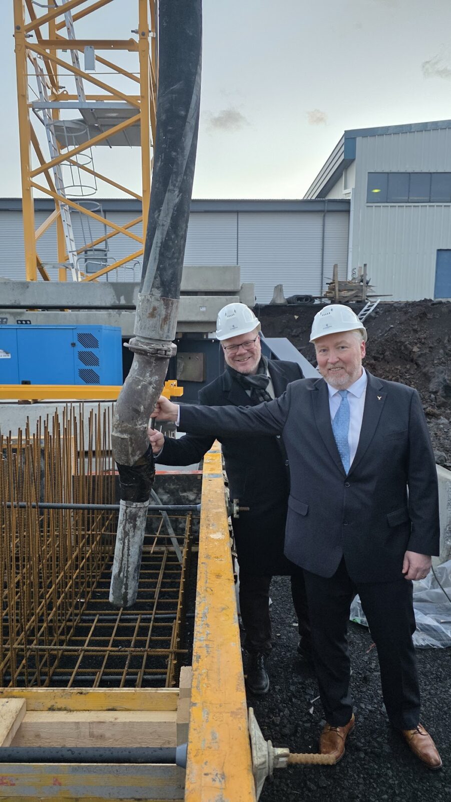 Uppsteypa á fyrsta nýja fjölbýlishúsinu sem rís við Hraun vestur er hafin. Hún hófst föstudaginn 23. janúar og fengu bæjarstjóri og formaður bæjarráðs – í jakkafötunum – að stýra fyrstu steypunni í grunninn, en þó ekki lengi þar til fagmenn tóku aftur við stjórnartaumum.