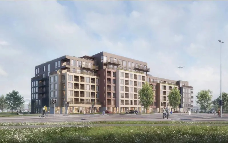 Alls verða 106 íbúðir í 6.-8. hæða fjölbýlishúsi að Reykjavíkurvegi 60-62.
