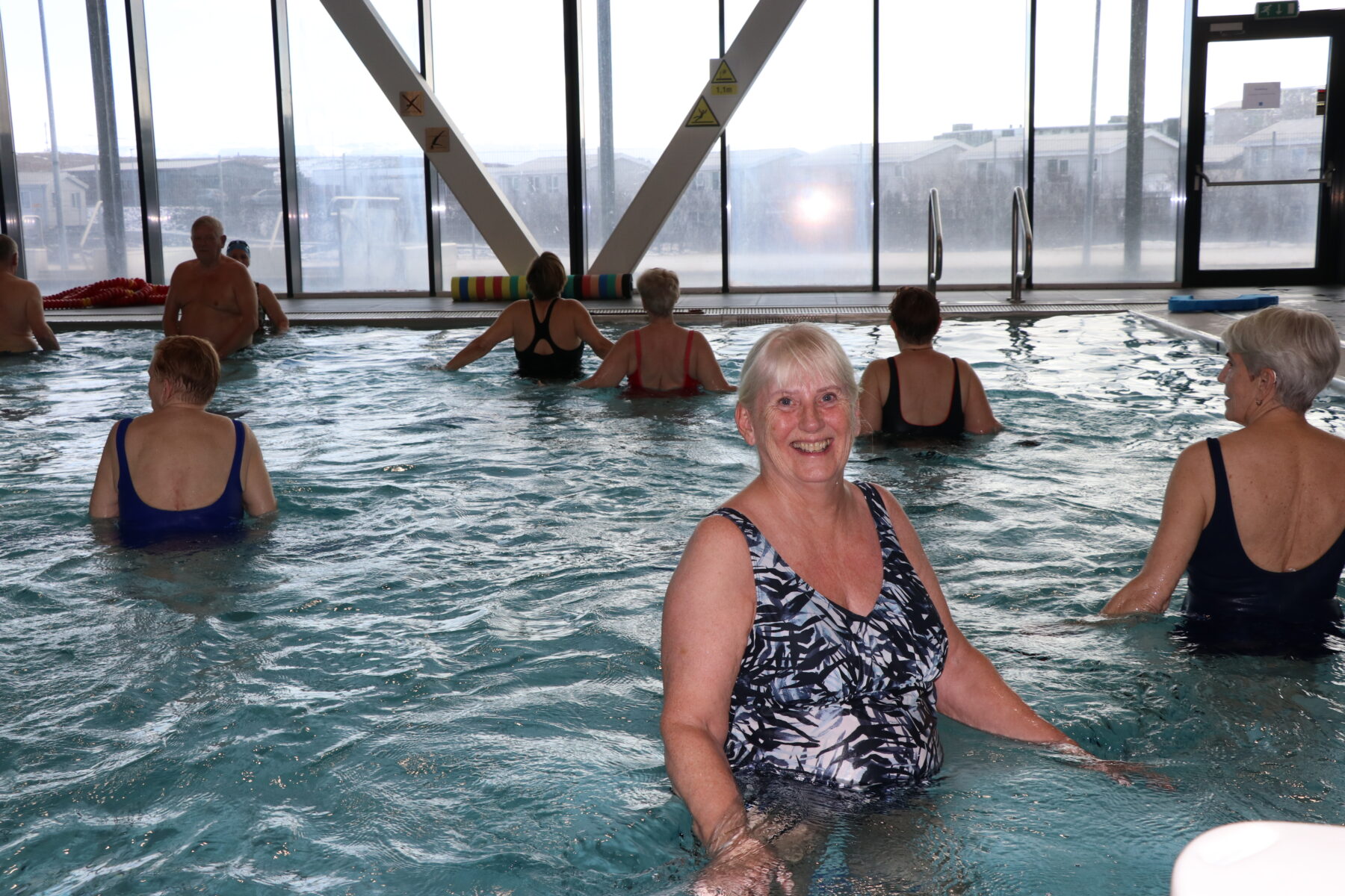 „Við hér í sjúkraþjálfuninni vísum fólki í vantsleikfimi, enda er það þá í viðhaldsmeðferð. Það þarf viðhald þegar aldurinn er farinn að fara minna á sig. Það er ávinningurinn af þessu,“ segir Kristinn sem hvetur fólk 67 ára og eldra til að taka þátt.
