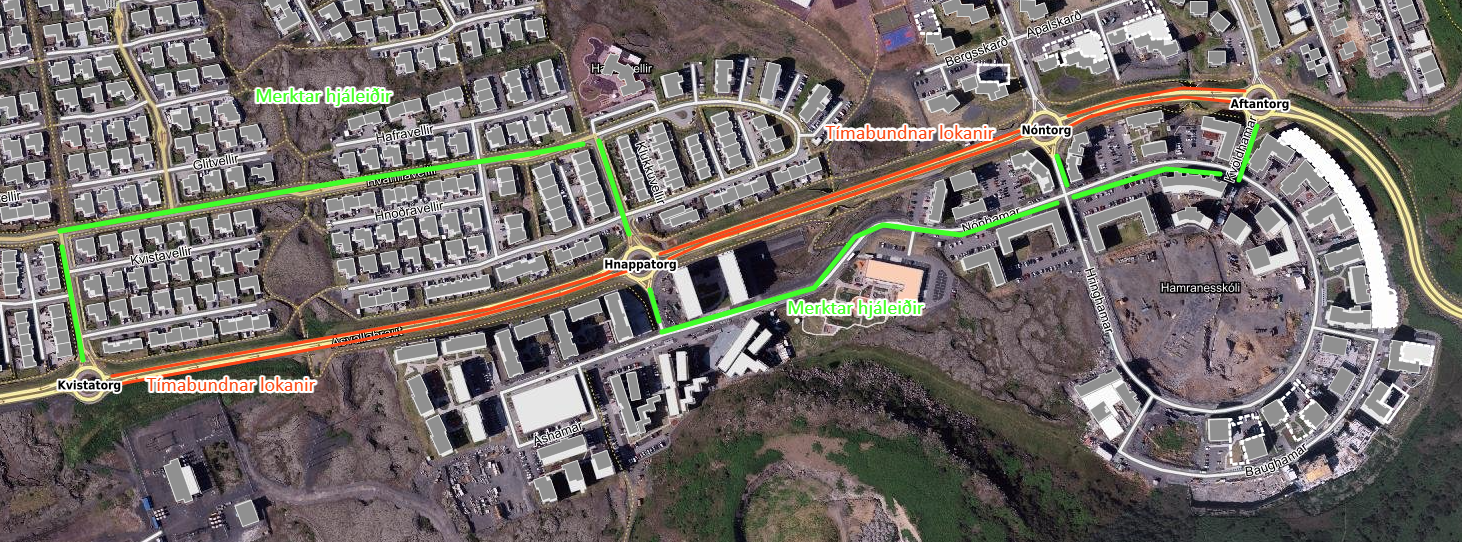 Þrenging gatna við Hringhamar og Baughamar. Í gildi frá 8.desember 2025 til 1.desember 2027.