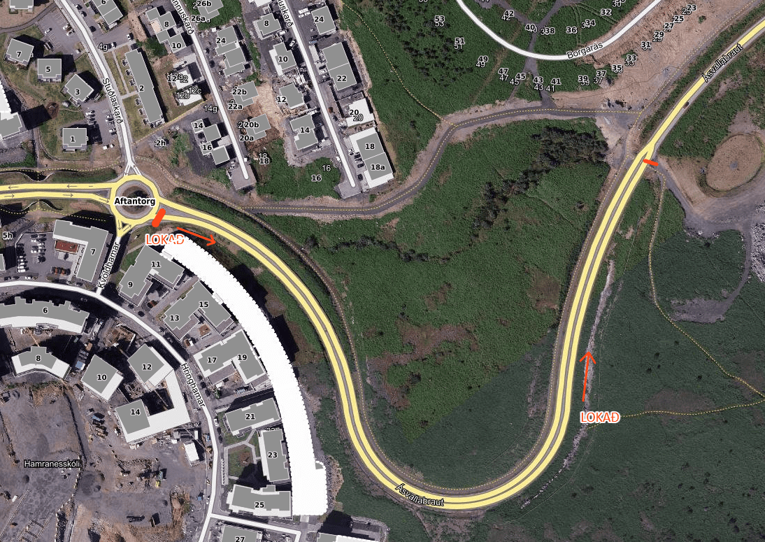 Vegna vegaframkvæmda verður Ásvallabraut (akrein upp frá Aftantorgi) lokuð, þriðjudaginn 13.janúar milli kl.9:00-13:00. Skipt verður um ljósastaur. Hjáleið verður um Ásvallabraut til vesturs, Ásbraut og Kaldárselsveg.