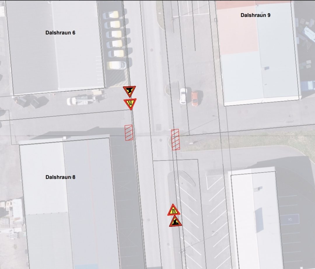 Vegna framkvæmda verður þrenging um Dalshraun (við nr. 8 og 11), frá miðvikudegi, 4.febrúar kl.8:00, til föstudags, 6.febrúar kl.13:00. Lagning lágspennustrengs frá götuskáp að Dalshrauni 8. Götu verður ekki lokað, aðeins þrengingar á svæðinu.