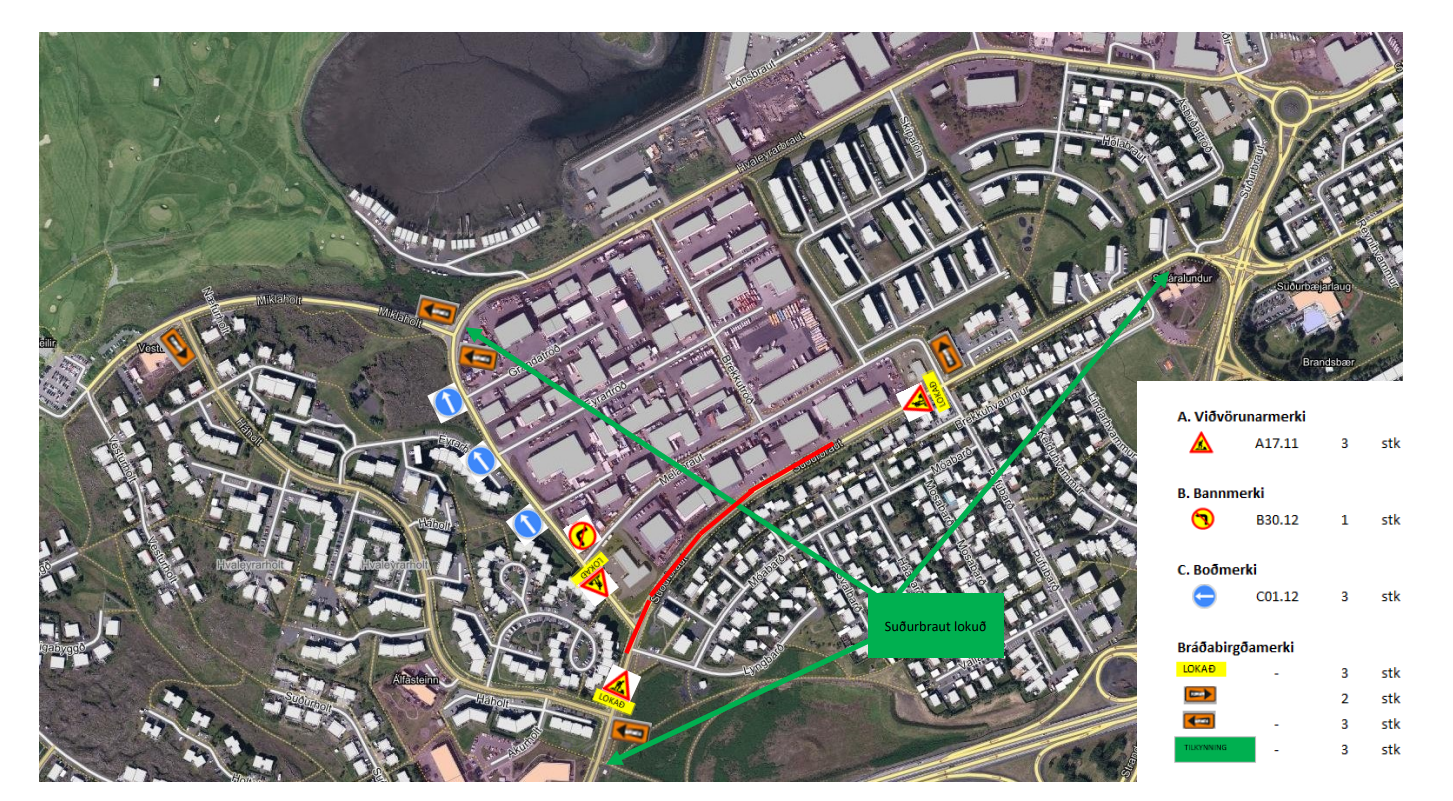 Vegna vegaframkvæmda verða Hvaleyrarbraut og Suðurbraut lokaðar að hluta milli kl.10:00 og 19:00, miðvikudaginn 9.júlí.