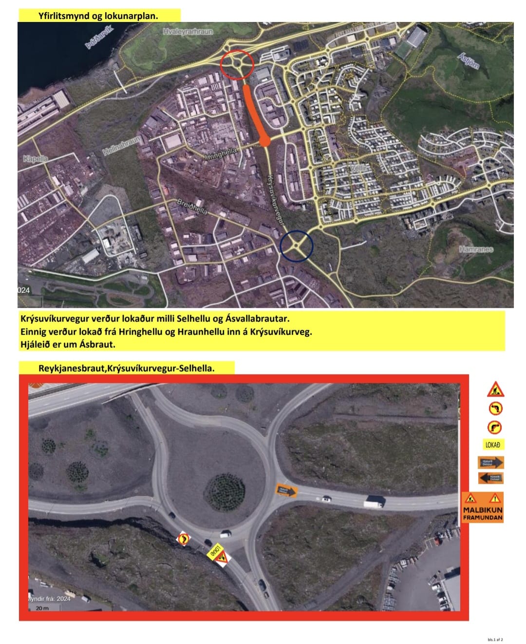 Vegna vegaframkvæmda verður hluti af Krýsuvíkurvegi lokaður fimmtudaginn 25 september milli kl.9:00-14:00.
