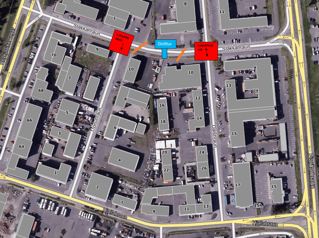 Vegna vegaframkvæmda verður Stakkahraun milli Dalshrauns og Trönuhrauns lokað, frá 12.febrúar kl.8:00 til 19.febrúar kl.12:00.