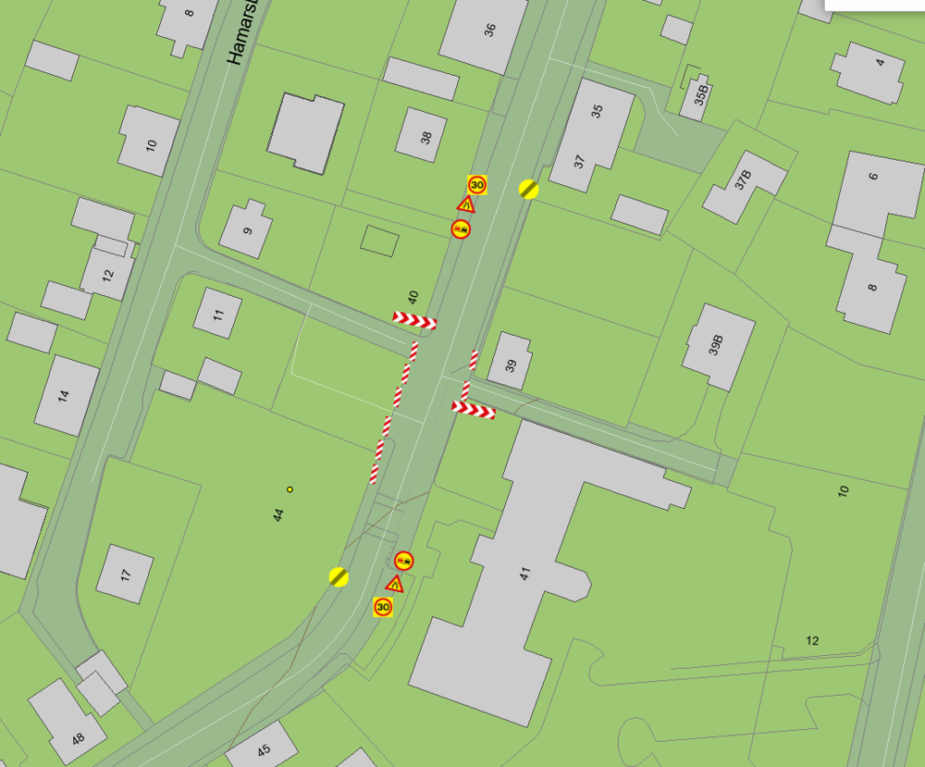 Þverun við Suðurgötu 44 vegna röralagna. Í gildi frá 11.desember 2025 kl.8:00 til 30.janúar 2026 kl.17:00. Götu verður ekki lokað, aðeins þrenging