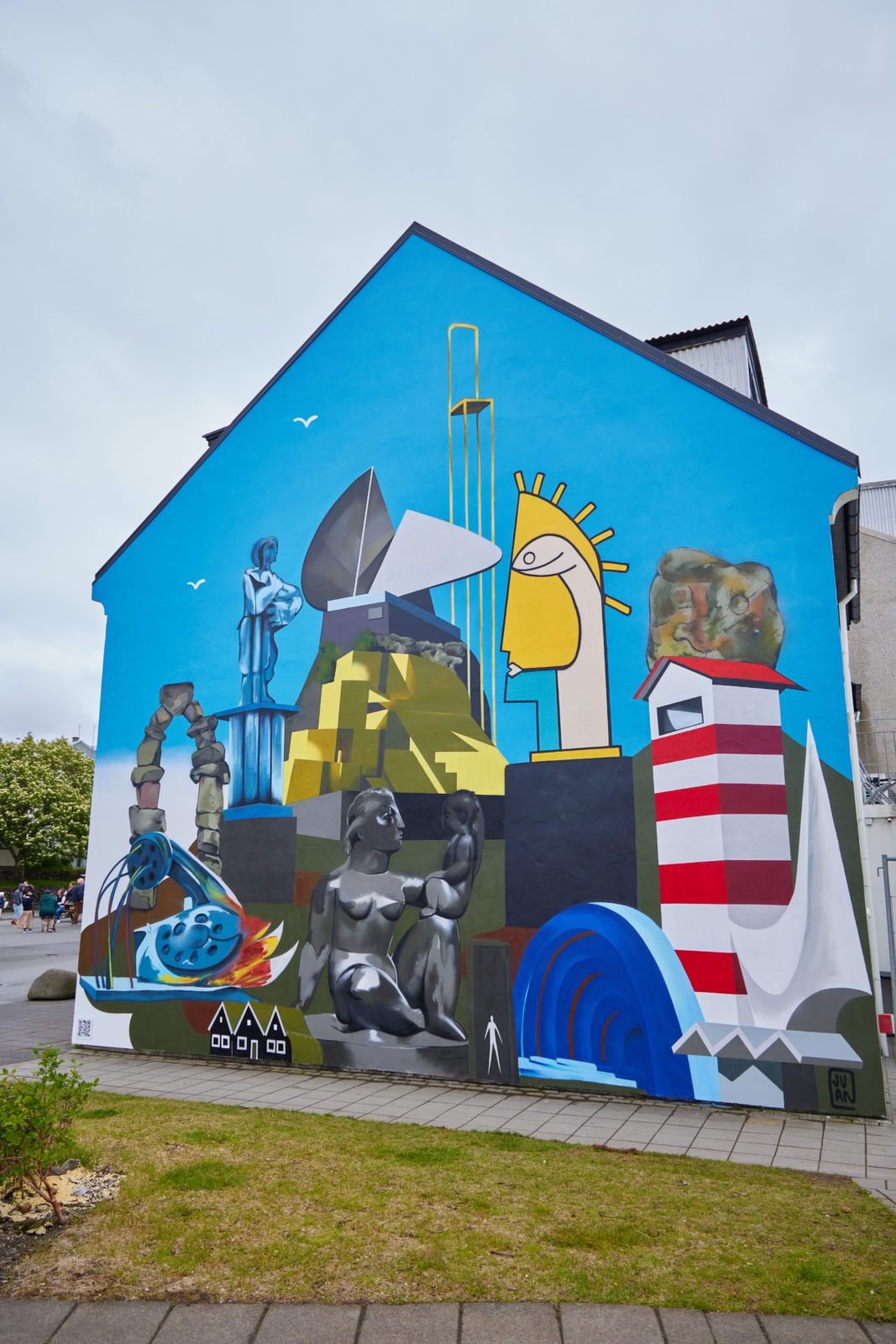 Þar sem Hafnarfjörður er bær fullur af útilistaverkum, sem hægt er að kynna sér á utilistaverk.hafnarborg.is, lagði Juan fram skissu að klippimynd (e. collage) með völdum höggmyndum bæjarins. Haft var samband við alla höfunda listaverkanna eða afkomendur þeirra og öll gáfu þau góðfúslegt leyfi fyrir því að nota myndir af verkunum á veggmyndina og fá þau bestu þakkir fyrir. Á veggmyndinni er að finna QR-kóða sem tengist vef menningar- og listamiðstöðvarinnar Hafnarborgar um útilistaverk í umsjón stofnunarinnar, þannig að fólk sem heimsækir miðbæ Hafnarfjarðar getur nálgast upplýsingar og kortið beint á vefnum og notið þess að ganga um bæinn og skoða hin fjölmörgu útilistaverk sem prýða bæinn. Íbúar eru eindregið hvattir til þess að fá sér göngu um bæinn, staldra við og leyfa listinni að efla andann.