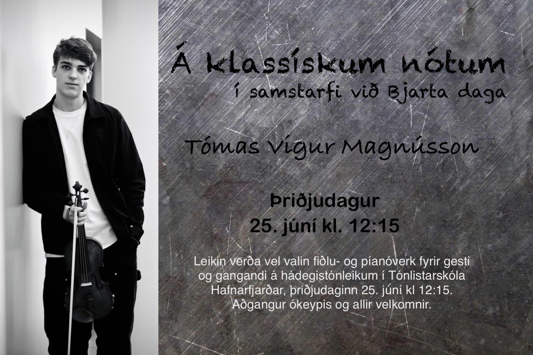 Tónleikarnir eru liður í Menningarhátíð Hafnarfjarðar, Björtum dögum. Aðgangur ókeypis og allir velkomnir.