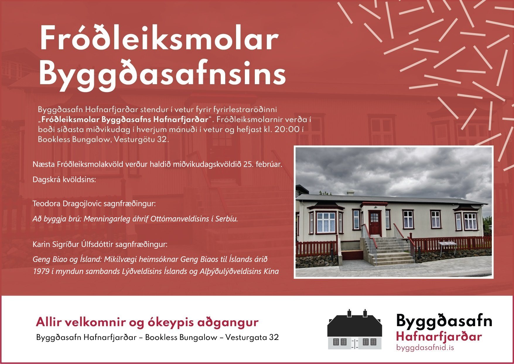 Næsta fróðleiksmolakvöld verður haldið í Bookless Bungalow, Vesturgötu 32 Hafnarfirði, miðvikudagskvöldið 25. febrúar næstkomandi. Á dagskrá verða: Teodora Dragojlovic…