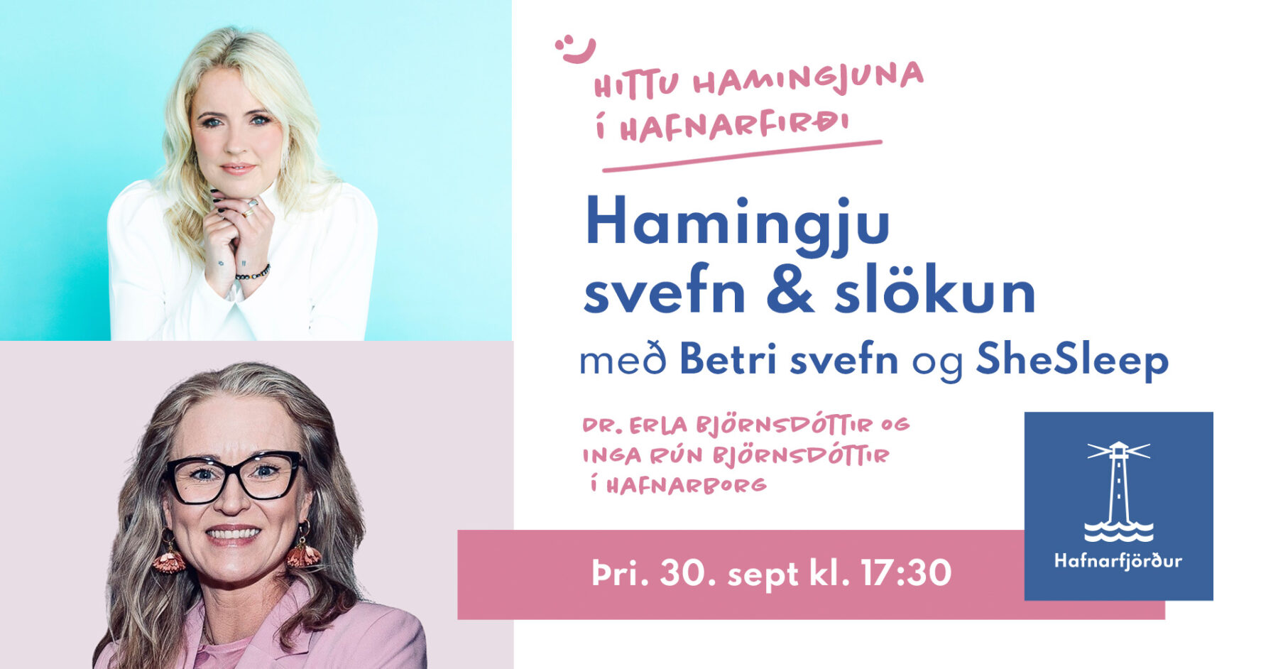 Við byrjum viðburðinn með stuttri jarðtengjandi útihugleiðslu við litlu tjörnina fyrir utan Hafnarborg og færum okkur svo inn í Hafnarborg þar sem Erla fræðir þátttakendur um svefn og gefur góð svefnráð. Inga Rún leiðir svo jóga nidra djúpslökun, mjög öflugt verkfæri til að virkja sefkerfi líkamans og styðja við betri svefn og vellíðan.