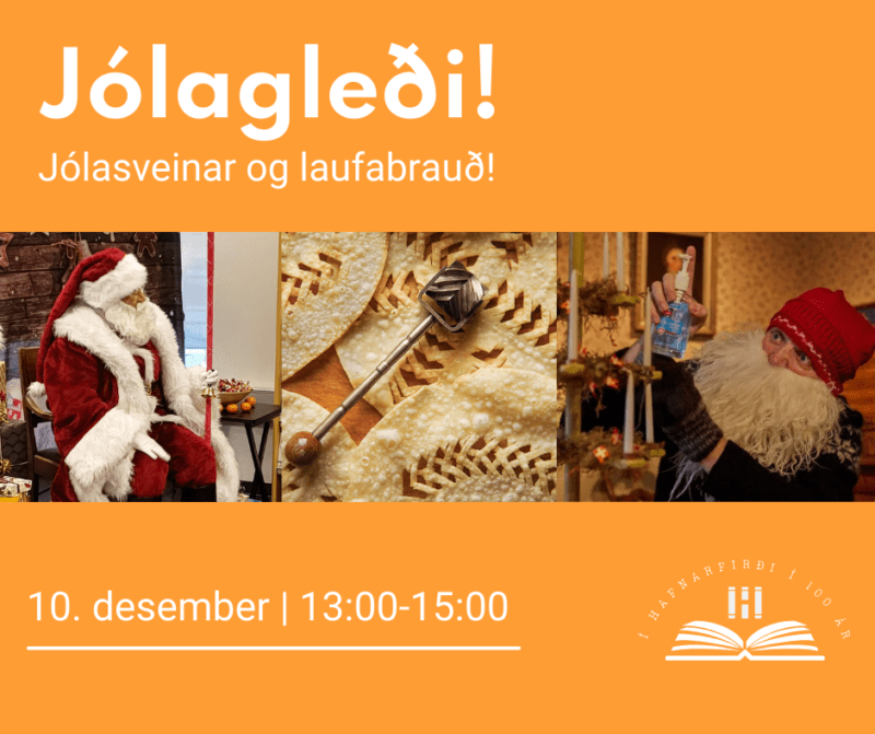 Þennan dag ætlum við líka að steikja laufabrauð! Nú er um að gera að mæta og gera fangamarkið sitt, en við verðum með kökur, járn og hnífa, og svo auðvitað pott og hlemm til að steikja og pressa. Þátttaka er auðvitað ókeypis, en er bundin skráningu – svo að við vitum hvað þarf að fletja mikið deig! Skráning á bokasafn@hafnarfjordur.is