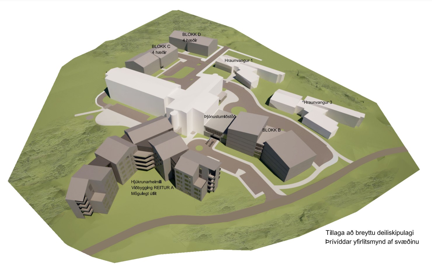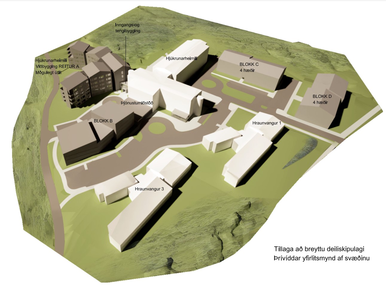 Tillaga að breyttu deiliskipulagi – yfirlitsmynd af svæðinu í þrívídd