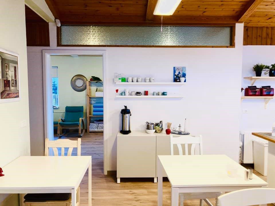 Heitt verður á könnunni og vöfflusala. Myndlistarsýning og handverk til sölu: Sápur, kort brjóstsykur, veifur, sulta og hannyrðir.
