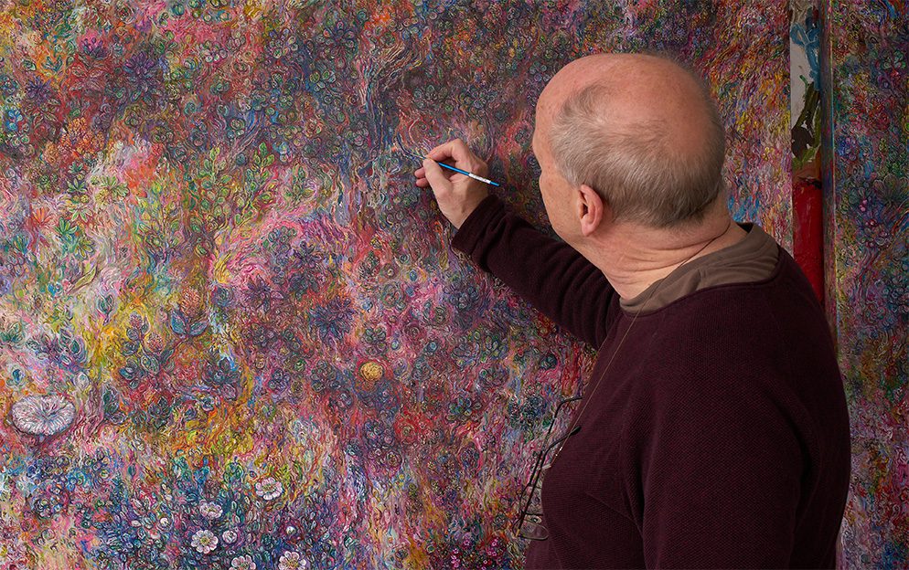 Laugardaginn 28. febrúar kl. 14 mun Eggert Pétursson, myndlistarmaður, taka á móti gestum og segja frá verkum sínum á sýningunni Roða, sem lýkur sömu helgi. Á sýningunni má sjá bæði ný málverk og grafíkverk eftir listamanninn, sem hefur um árabil vakið athygli fyrir einstakan og ástríðufullan áhuga á íslenskri náttúru og þá sérstaklega flóru landsins.