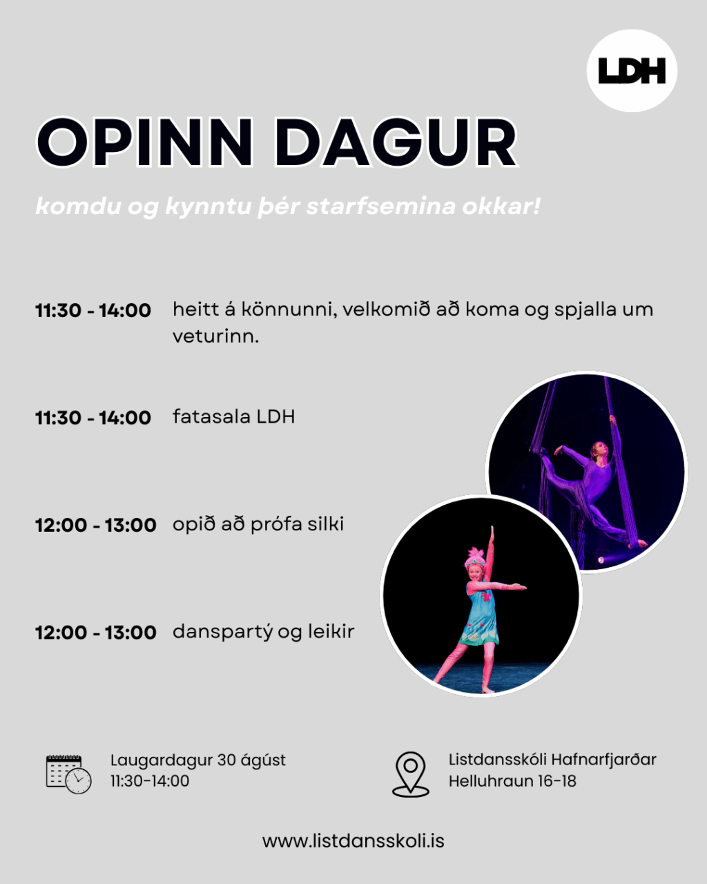 Þér er boðið á opin dag í Listdansskóla Hafnarfjarðar, komdu og kynntu þér starfsemina okkar!