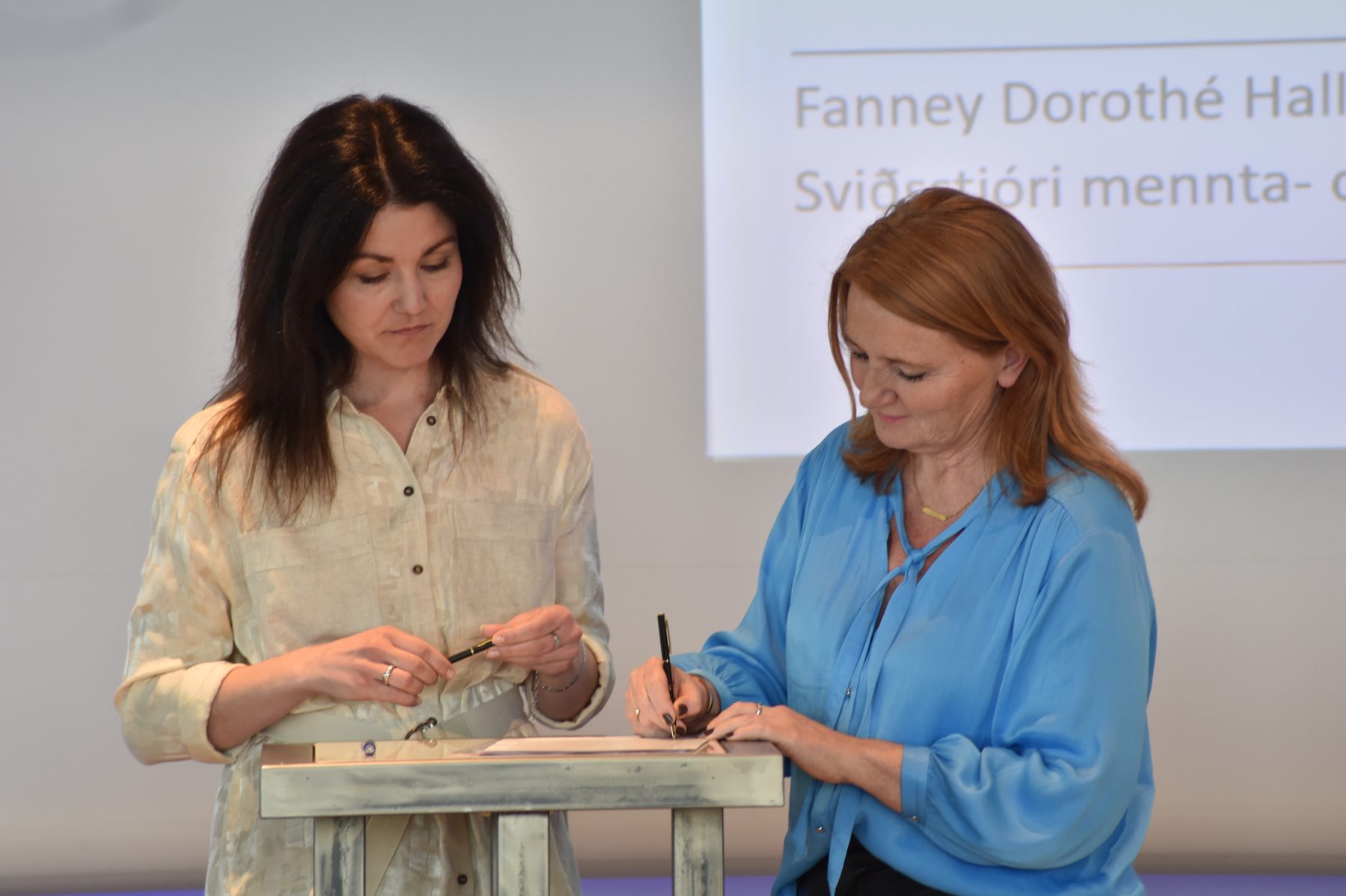 Arna Pálsdóttir og Rósa Guðbjartsdóttir skrifa undir áskorun til stjórnvalda